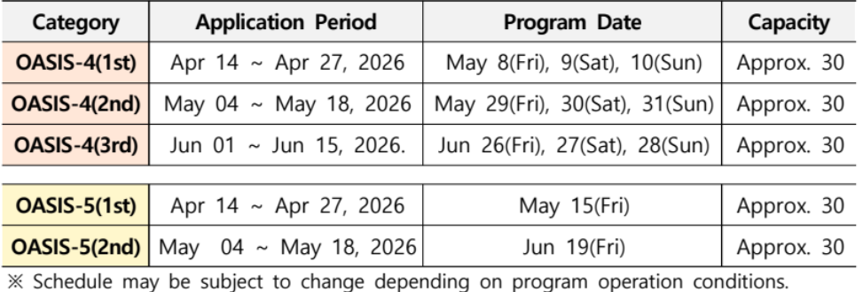 OASIS (Overall Assistance for Startup Immigration System) supports non-Korean prospective entrepreneurs seeking to obtain the Startup Visa (D-8-4) and Startup Preparation Visa (D-10-2). Only non-Korean nationals who are legally residing in Korea as of the date of this announcement are eligible to participate in and complete the program.